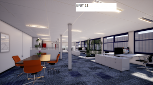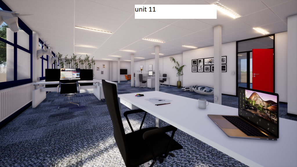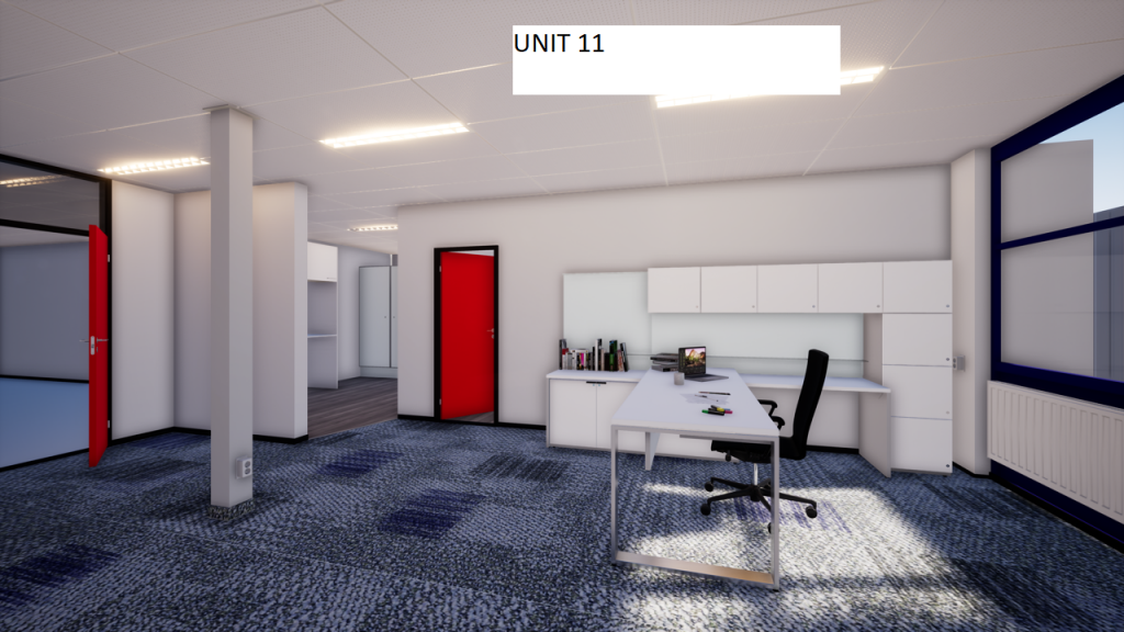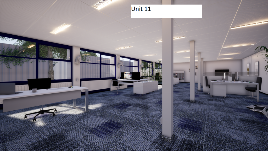 Het betreft een grote open kantoorunit+ een inpandige bespreekkamer en een keuken.